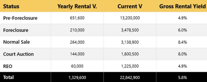 This metric compares annual rental income to the property’s current value, indicating income generation efficiency.