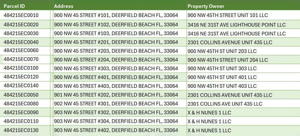 We successfully won the U.S. Bankruptcy Auction for 8 residential condominium units — over half (57%) of the 14- unit Beverly Building — establishing a controlling interest in a prime Deerfield Beach asset.